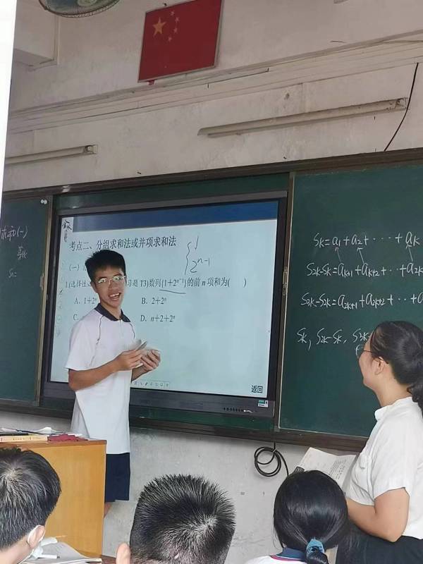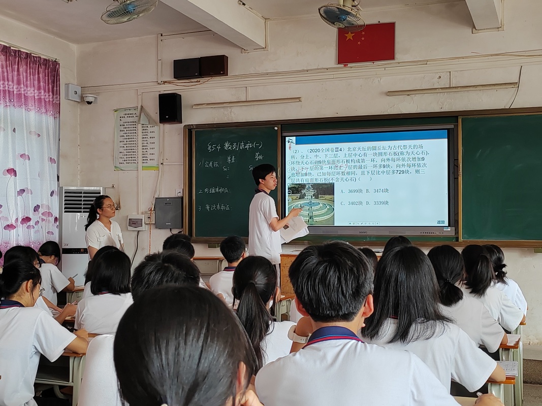 數(shù)學(xué)青年教師孔敏琦的《數(shù)列求和》一課,設(shè)計的任務(wù)清楚明了,選擇的題目有難有易、剛?cè)岵?jì),讓學(xué)生能積極參與教學(xué)活動,展示思考成果,體驗到成功的樂趣。整節(jié)課很好地落實了基于有效情境下的以問題為導(dǎo)向的任務(wù)型課堂教學(xué),運用數(shù)學(xué)情境解決數(shù)學(xué)問題。