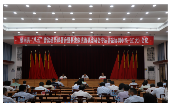 為深入學(xué)習(xí)貫徹黨的十九屆六中全會(huì)精神,貫徹落實(shí)習(xí)近平法治思想,以及中央全面依法治國(guó)、省委全面依法治省、市委全面依法治市工作會(huì)議精神,9月20日上午,郁南縣召開(kāi)“八五”普法動(dòng)員部署會(huì)暨縣委全面依法治縣委員會(huì)守法普法協(xié)調(diào)小組(擴(kuò)大)會(huì)議??h政府副縣長(zhǎng)、縣公安局局長(zhǎng)王朝輝出席會(huì)議并講話??h委全面依法治縣辦副主任、守法普法協(xié)調(diào)小組副組長(zhǎng)、縣司法局局長(zhǎng)賴偉強(qiáng)主持會(huì)議??h委全面依法治縣委員會(huì)守法普法協(xié)調(diào)小組成員單位有關(guān)負(fù)責(zé)人;各鎮(zhèn),縣直和上級(jí)駐郁南單位分管負(fù)責(zé)同志參加會(huì)議。