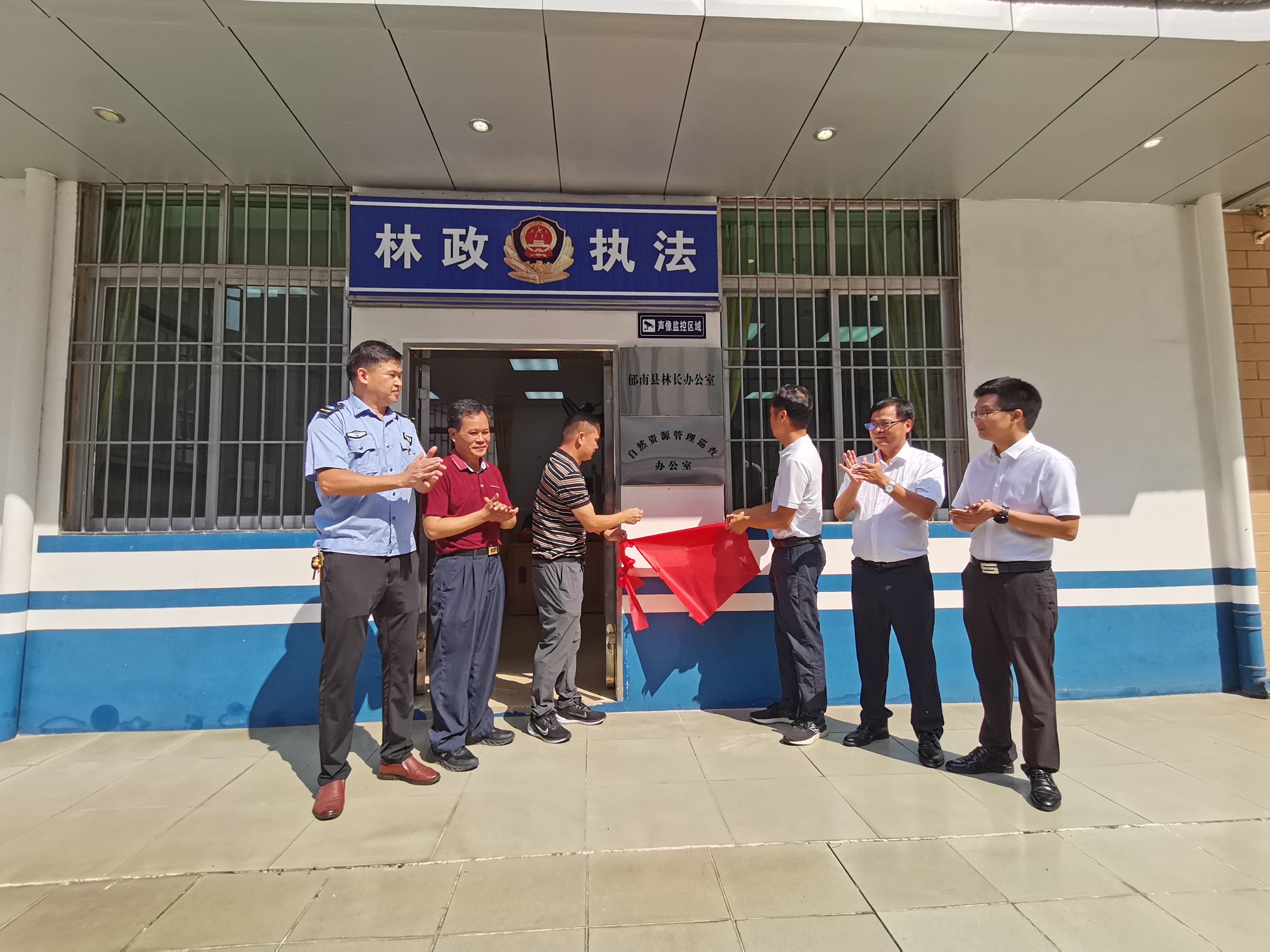 儀式現(xiàn)場,郁南縣自然資源局負(fù)責(zé)人莫梓輝和縣自然資源保護管理中心副主任陳智為“郁南縣自然資源局林長辦公室”“自然資源管理巡查辦公室”揭牌。