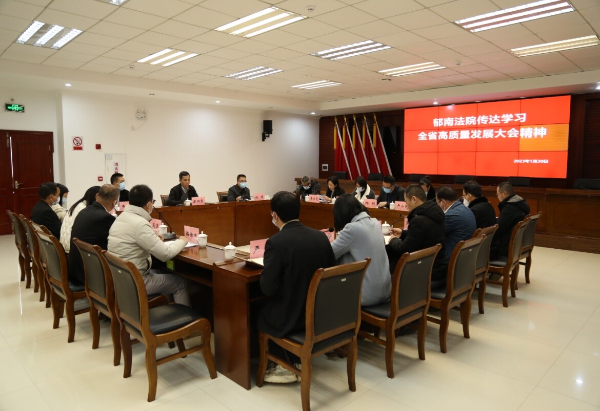 會議傳達(dá)學(xué)習(xí)了省兩會及全省高質(zhì)量發(fā)展大會精神等內(nèi)容。與會人員認(rèn)真學(xué)習(xí)、深入思考,結(jié)合全省高質(zhì)量發(fā)展大會精神及當(dāng)前工作形勢,匯總梳理存在的問題,圍繞審判執(zhí)行、隊(duì)伍建設(shè)、后勤保障等方面提出工作思路和想法,就更好地推動(dòng)郁南法院高質(zhì)量發(fā)展提出意見和建議。