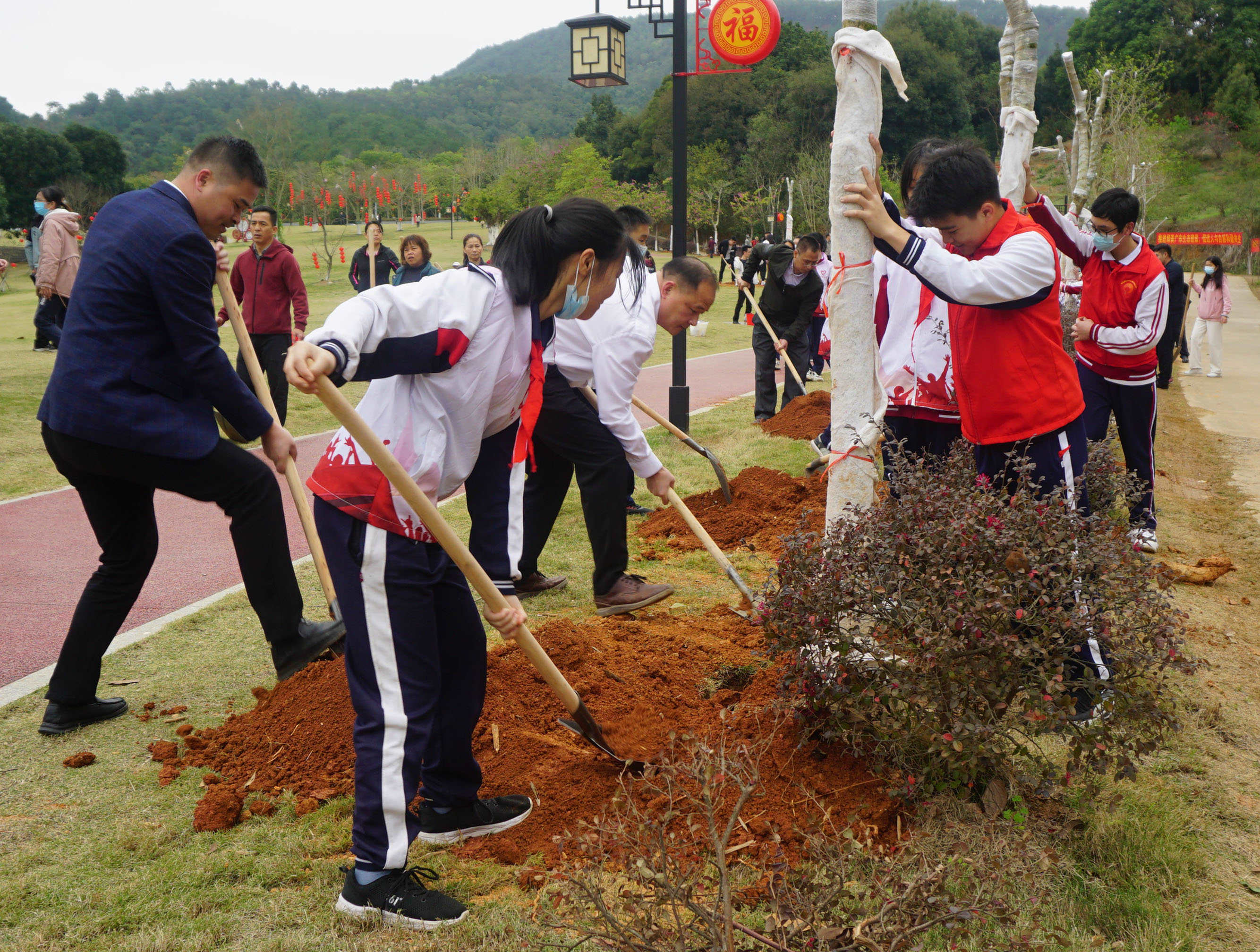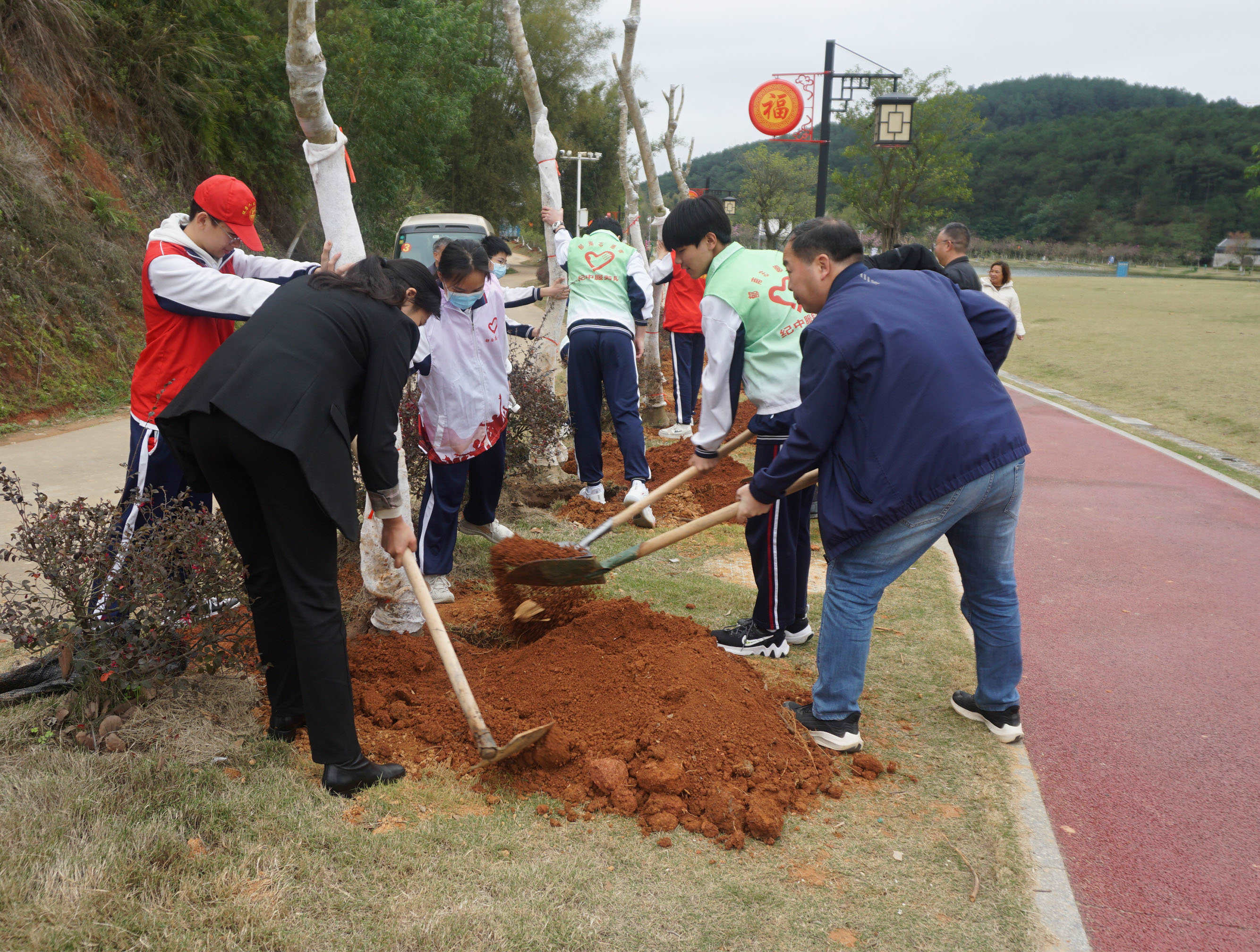 春風催新綠,植樹正當時。為全面貫徹黨的二十大精神,扎實推進“綠美廣東,生態(tài)建設”理念,加強學校生態(tài)文明教育,積極參與植樹造林和生態(tài)保護,2月13日下午,蔡朝焜紀念中學組織七、八年級師生到大王山森林公園開展“青年林”義務植樹活動。師生共植“青年”樹,為綠色郁南增添了一道亮麗的風景。 植樹現(xiàn)場,雖然氣溫驟降,寒風凜冽,但師生們個個熱情高漲、干勁十足,我校師生徒步來到大王山植樹點后便分工協(xié)作,有條不紊地進行挖坑、植苗、培土、澆水…… 青山綠水下,師生們擼起袖子,密切配合,干得熱火朝天。一顆顆希望的樹苗被種下,寄托了學校的殷殷希望,希望紀中學子能如綠苗般腳踏實地,健康成長,迎風挺立,不懼困難。 十年樹木,百年樹人。此次義務植樹活動,不僅能植樹護綠優(yōu)化生態(tài)環(huán)境,也在師生心間播下了希望的種子。師生凝心聚力,共建優(yōu)質(zhì)美麗郁南,共育創(chuàng)新型高質(zhì)量人才,奮力推進學校教育高質(zhì)量發(fā)展。