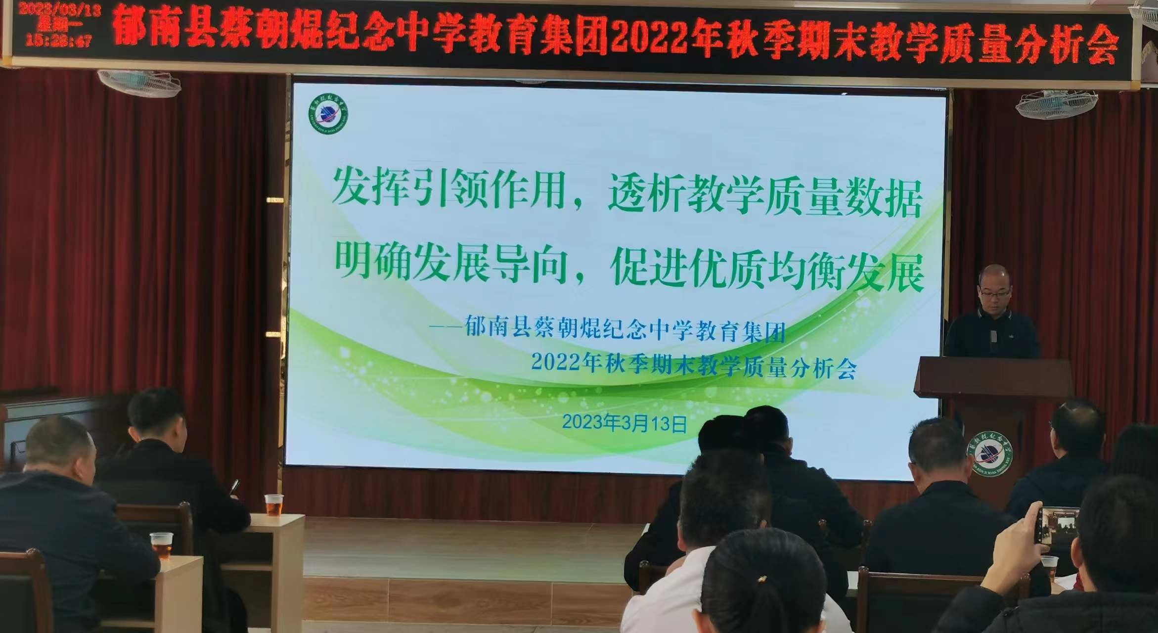 為在“雙減“背景下探尋落實(shí)學(xué)生素質(zhì)教育,更好地促進(jìn)我縣教育均衡發(fā)展,3月13日,在縣教師發(fā)展中心的指導(dǎo)下,郁南縣蔡朝焜紀(jì)念中學(xué)教育集團(tuán)在蔡朝焜紀(jì)念中學(xué)召開(kāi)了2022年秋季期末質(zhì)量分析會(huì)。集團(tuán)各成員學(xué)校主管教學(xué)的領(lǐng)導(dǎo)進(jìn)行了2022年秋教學(xué)質(zhì)量分析及提質(zhì)工作研討發(fā)言,全面總結(jié)了上學(xué)期的得與失,為有效落實(shí)“雙減”政策,提升教育教學(xué)質(zhì)量,奠定了良好基礎(chǔ)。