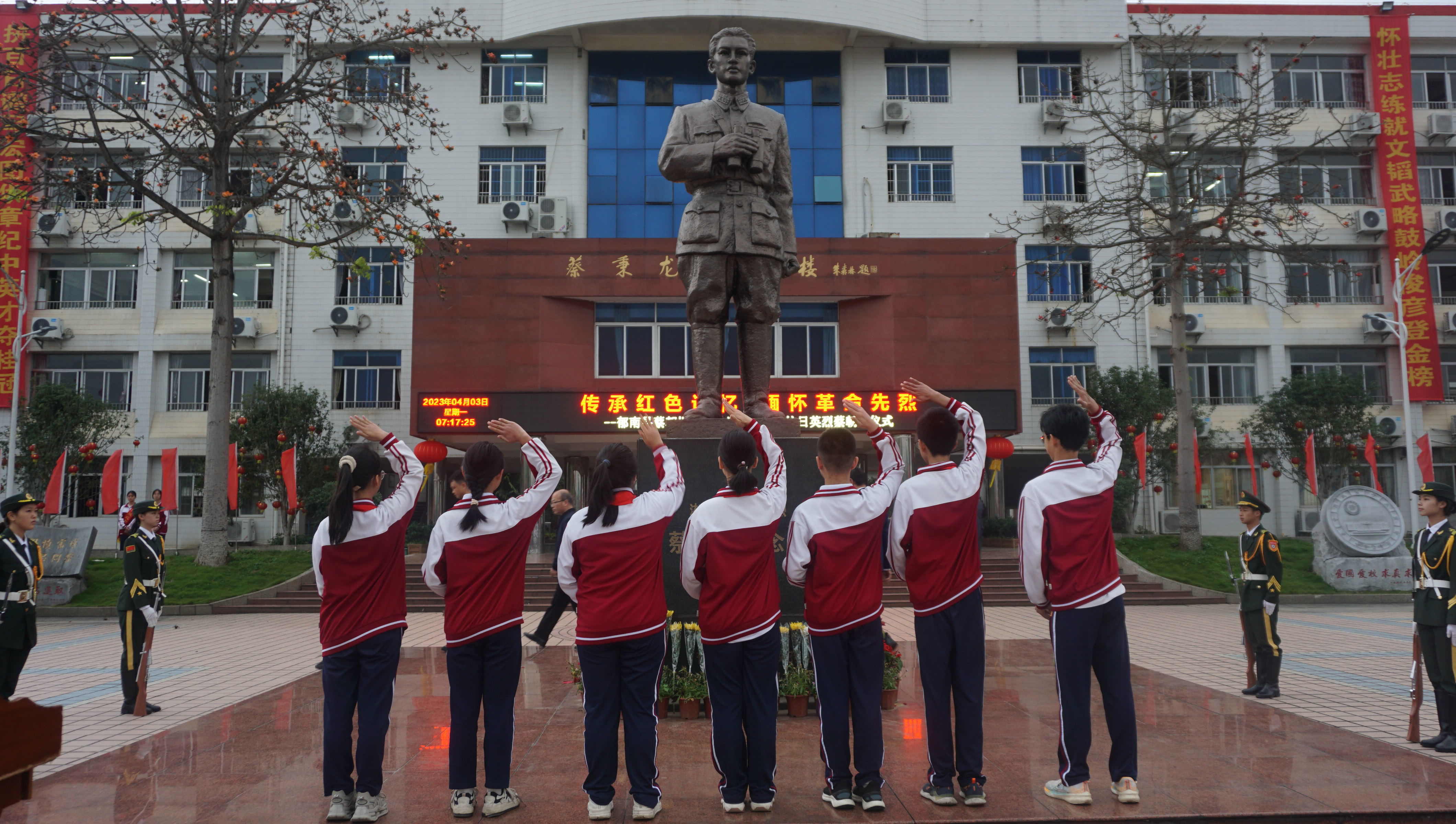 接著,一支由黨員教師、學(xué)生團(tuán)員、少先隊(duì)員和其他學(xué)生代表組成的隊(duì)伍,在學(xué)校黨支部彭燕飛書(shū)記的帶領(lǐng)下向烈士銅像敬獻(xiàn)鮮花,在雄壯的獻(xiàn)花曲中向蔡朝焜烈士表達(dá)了崇高的敬意!