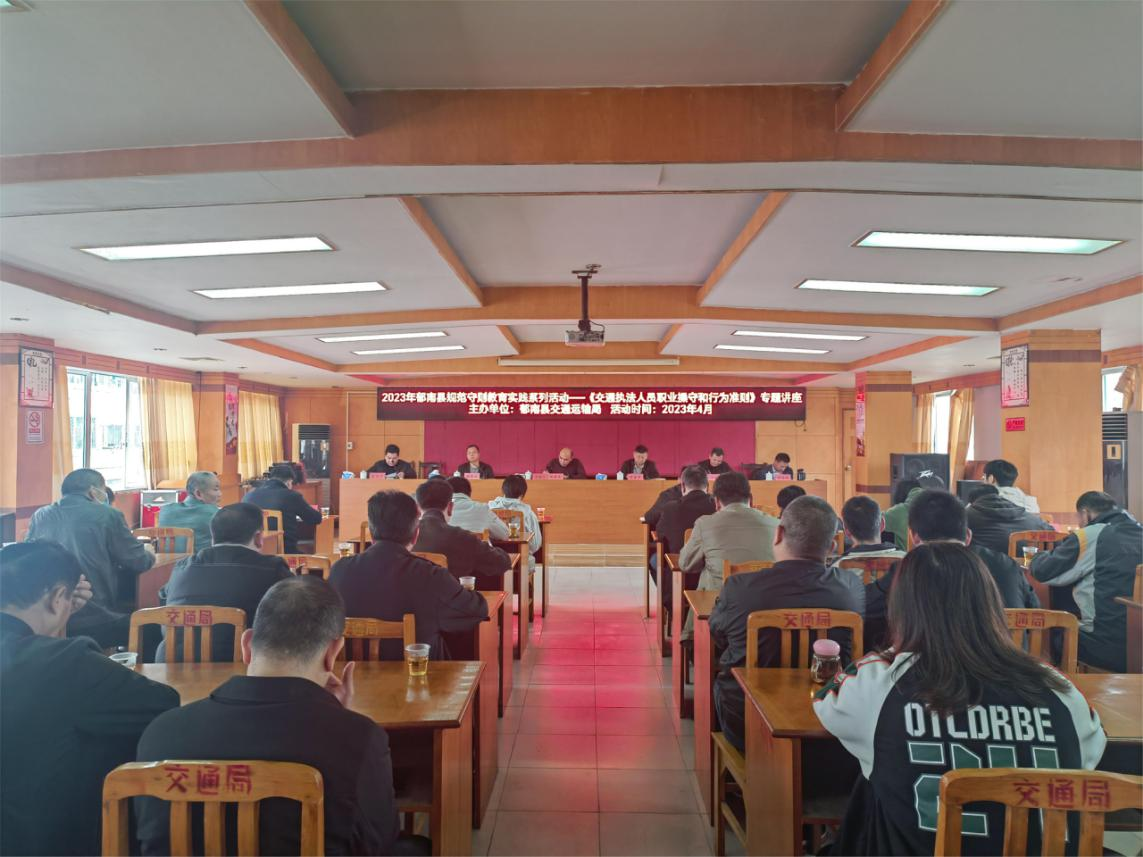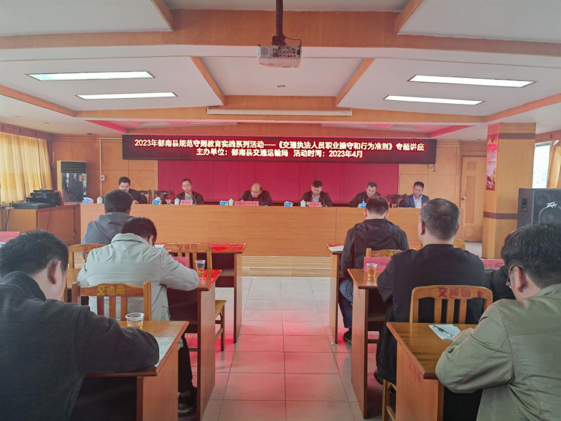 2023年4月1日,郁南縣交通運(yùn)輸局組織召開規(guī)范守則教育實(shí)踐系列活動(dòng)——《交通執(zhí)法人員職業(yè)操守和行為準(zhǔn)則》的專題講座。此次講座由交通運(yùn)輸局黨組書記、局長(zhǎng)葉澤華同志主講,局全體工作人員參加。