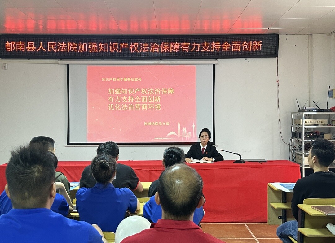 為加強(qiáng)知識產(chǎn)權(quán)法治保障和宣傳教育,持續(xù)營造法治化營商環(huán)境,4月25日下午,郁南法院連灘法庭黨支部干警前往大灣工業(yè)園區(qū)開展知識產(chǎn)權(quán)普法宣傳活動。
