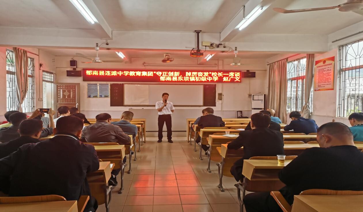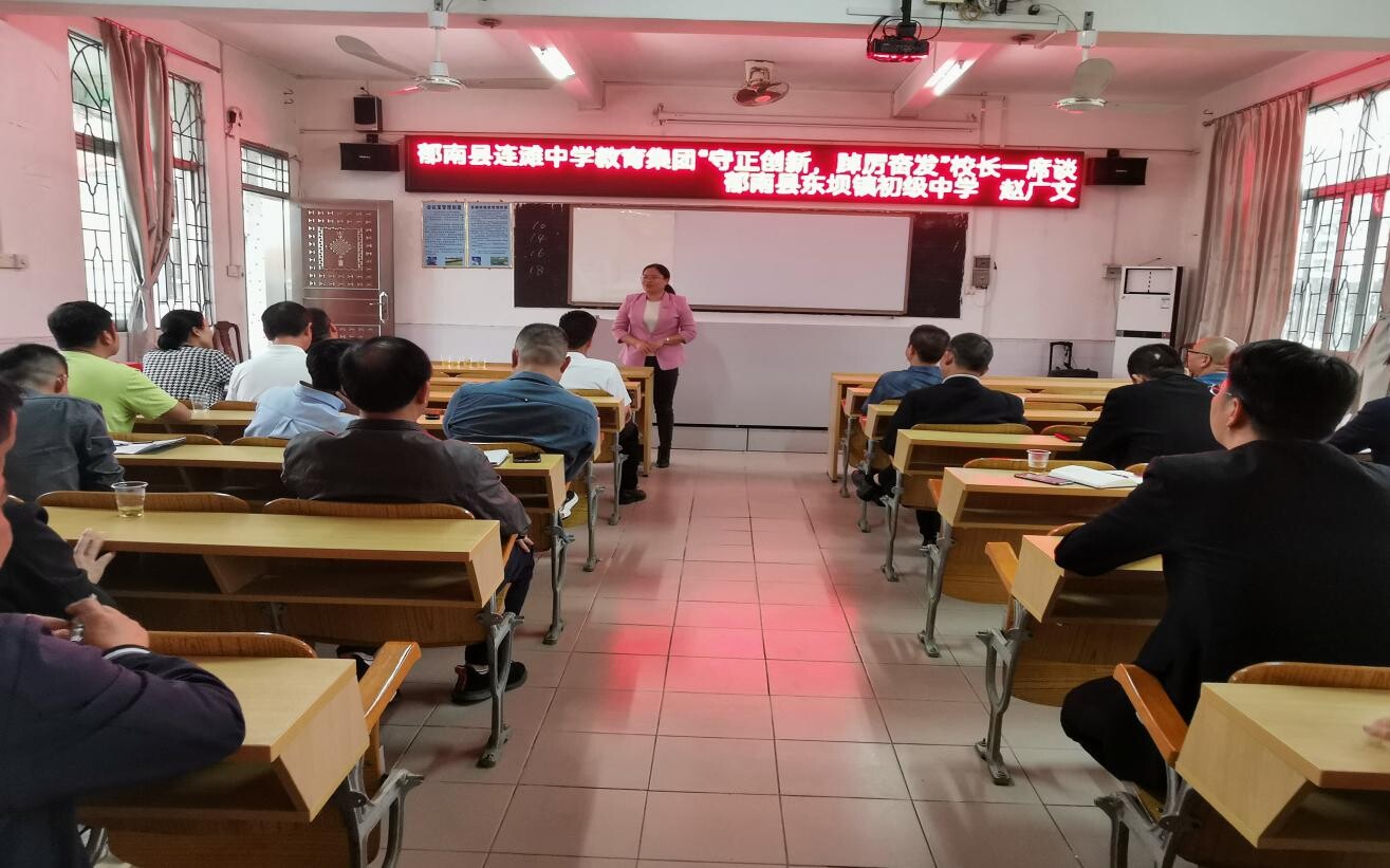 郁南縣東壩鎮(zhèn)初級中學校長趙廣文作了主題為"用心用情辦教育"的專題報告。