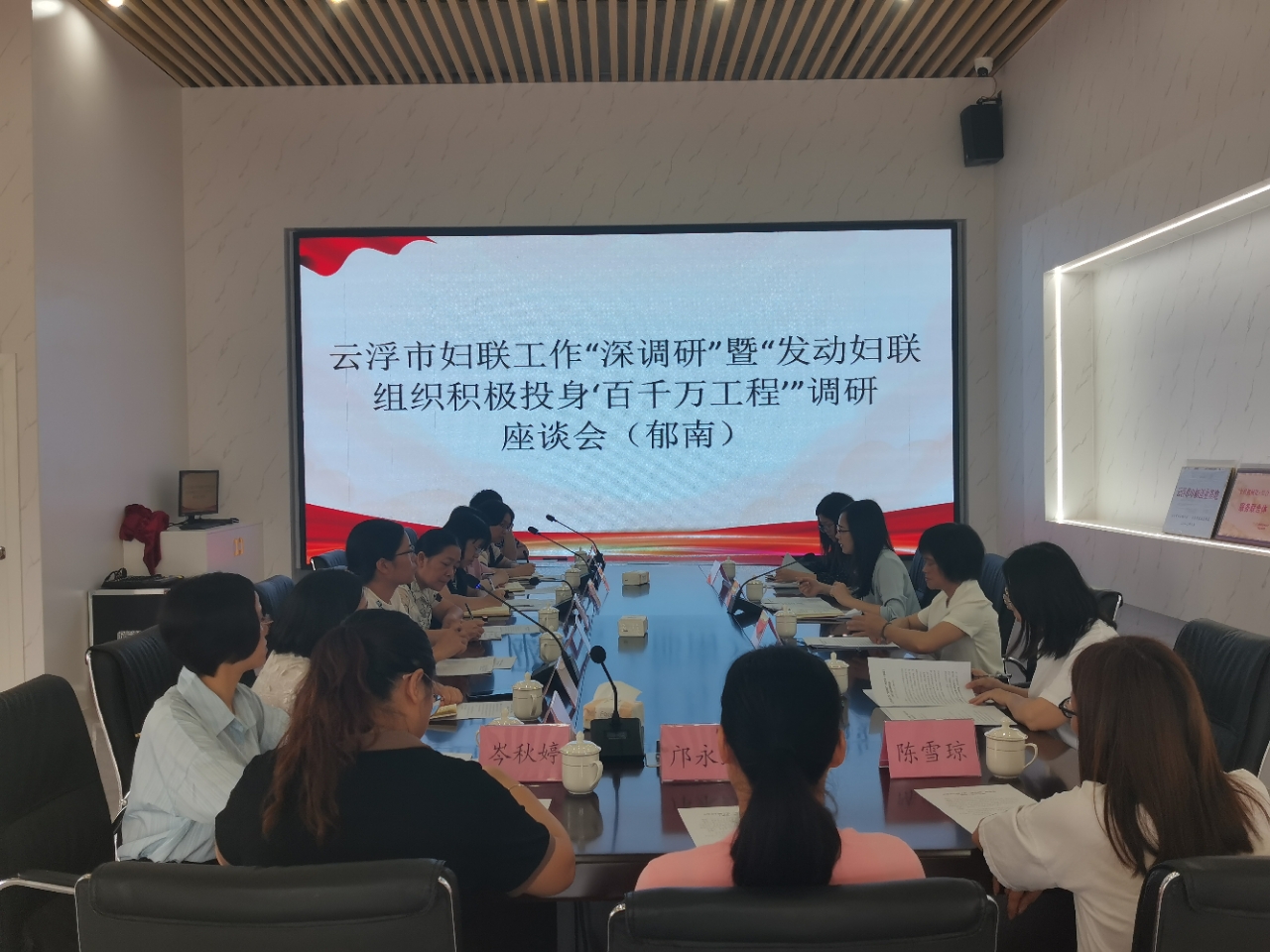 實(shí)地調(diào)研結(jié)束后,調(diào)研組一行召開座談會(huì),聽取郁南縣婦聯(lián)工作匯報(bào),并圍繞“發(fā)動(dòng)?jì)D聯(lián)組織積極投身‘百千萬工程’”、“破難行動(dòng)”、“科技創(chuàng)新巾幗行動(dòng)”、婚姻家庭糾紛預(yù)防化解聯(lián)動(dòng)機(jī)制、兒童友好城市建設(shè)和社區(qū)家長(zhǎng)學(xué)校建設(shè)等內(nèi)容與參會(huì)人員深入交流,認(rèn)真聽取意見建議,共同研究對(duì)策措施。