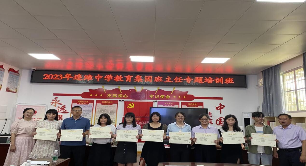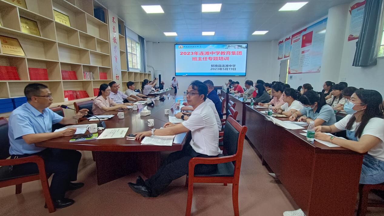 為進(jìn)一步加強(qiáng)班主任隊(duì)伍建設(shè),提升班主任的專業(yè)素養(yǎng)和管理水平,5月19日上午,連灘中學(xué)在黨建活動室舉行2023年連灘中學(xué)教育集團(tuán)班主任專題培訓(xùn)。郁南縣教育局德育股負(fù)責(zé)人周紅芬、集團(tuán)總校長劉興華、連灘中學(xué)德育管理干部和班主任、云安縣白石中學(xué)10位管理干部及連灘中學(xué)教育集團(tuán)各成員學(xué)校德育副校長和班主任代表參加,政教處副主任區(qū)順柱主持。