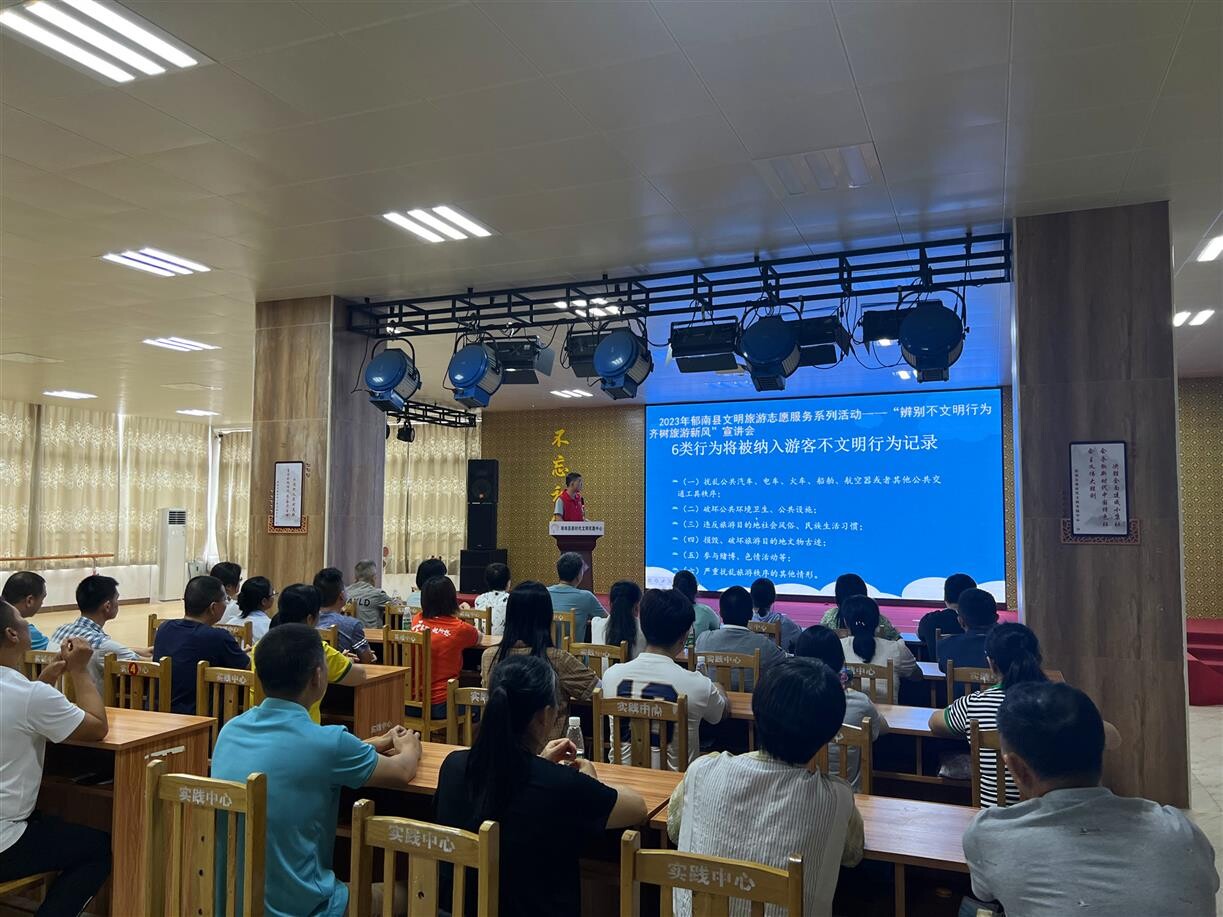 端午假期、暑假將至,為深化文明城市創(chuàng)建工作,傳遞文明旅游觀念,進一步提升郁南人民的文明旅游素養(yǎng),6月5日,郁南縣旅游志愿服務(wù)隊在縣新時代文明實踐中心成功舉辦2023年郁南縣文明旅游志愿服務(wù)系列活動——“辨別不文明行為齊樹旅游新風”宣講會,參與人數(shù)近百人。
