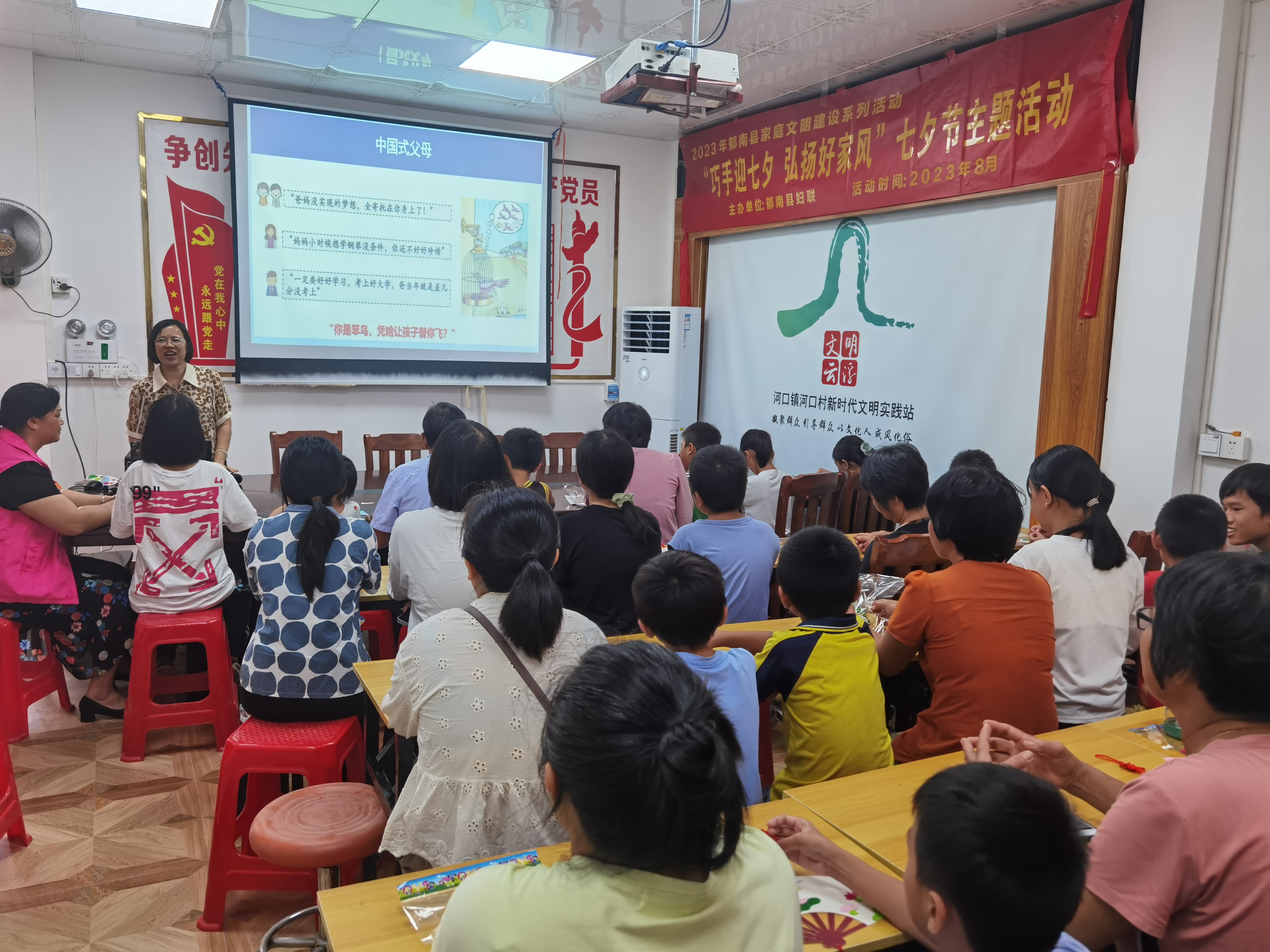 為貫徹落實(shí)習(xí)近平總書記關(guān)于注重家庭家教家風(fēng)建設(shè)的重要論述精神,教育和引導(dǎo)廣大群眾樹立積極、健康、向上的婚戀觀和家庭觀,厚植家國情懷,在七夕節(jié)來臨之際,8月17日,郁南縣婦聯(lián)聯(lián)合河口鎮(zhèn)婦聯(lián)在河口村委開展“ 巧手迎七夕 弘揚(yáng)好家風(fēng) ”七夕節(jié)主題活動,活動吸引了30多人參加。