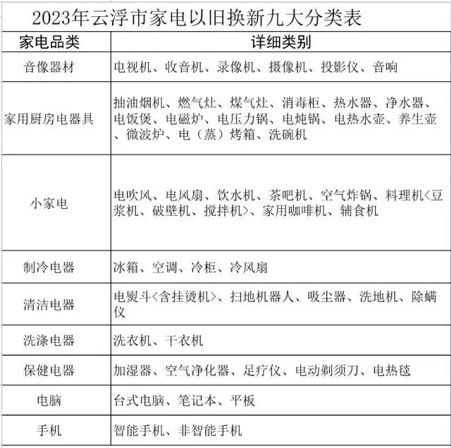 附件1:2023年云浮市家電以舊換新九大類分類表