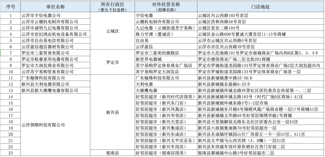 附件2:2023年云浮市家電“以舊換新”活動(dòng)商戶名單