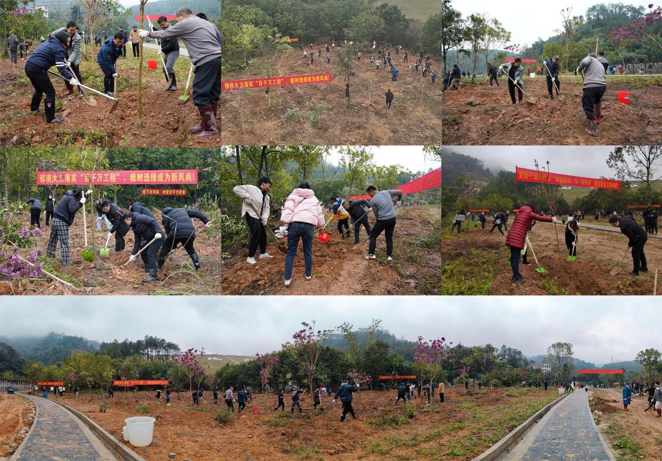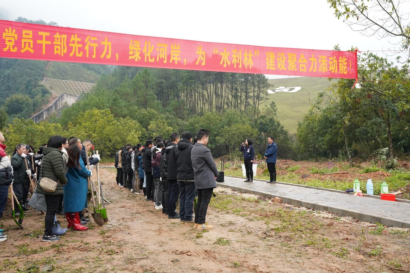 為貫徹習(xí)近平生態(tài)文明思想,落實省、市、縣實施“百千萬工程”和綠美廣東生態(tài)建設(shè)的部署要求,牢固樹立和踐行“綠水青山就是金山銀山”理念。1月28日,郁南縣水務(wù)局直屬機關(guān)黨委組織“黨建引領(lǐng)凝心聚力?植水利林建綠美郁南”主題黨日活動,植樹活動在向陽水庫開展,共有100多名黨員干部職工參與、種植紫花風(fēng)鈴藍花楹600多棵,市水務(wù)局黃海燕局長蒞臨現(xiàn)場進行動員講話,并從水利角度助推“百千萬工程”及綠美廣東生態(tài)建設(shè)提出寶貴的指導(dǎo)意見。