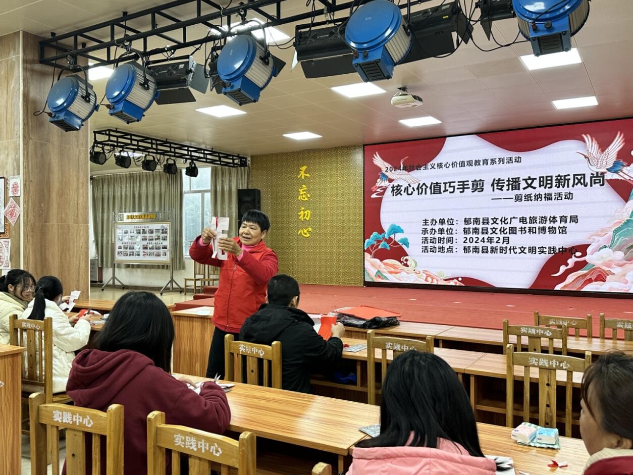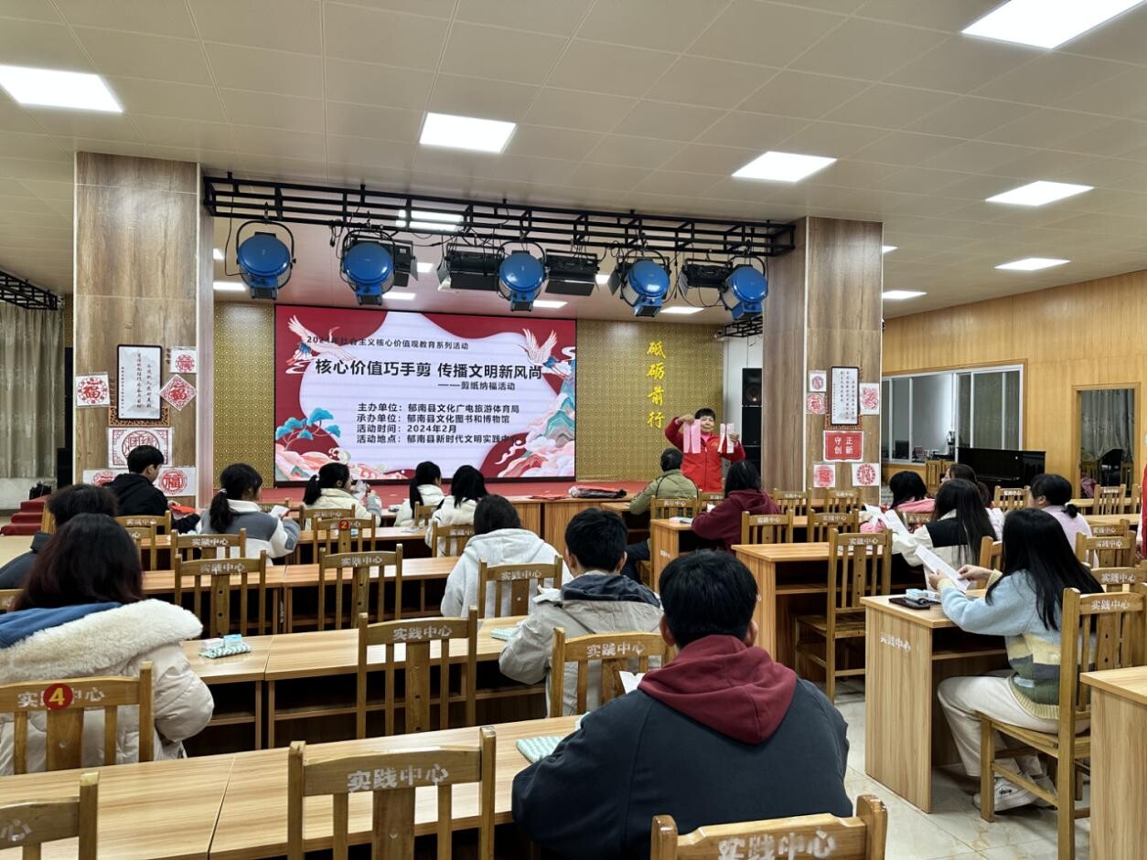 在新春佳節(jié)來臨之際,為弘揚中華優(yōu)秀傳統(tǒng)歷史文化,增強社會主義核心價值觀,豐富群眾的業(yè)余生活,提升人民群眾的獲得感、幸福感,2月6日上午,由郁南縣文化廣電旅游體育局主辦,郁南縣文化圖書和博物館承辦,在郁南縣新時代文明實踐中心開展“核心價值巧手剪·傳播文明新風尚”剪紙納?;顒樱瑸槿罕姞I造喜慶祥和的節(jié)日氣氛。