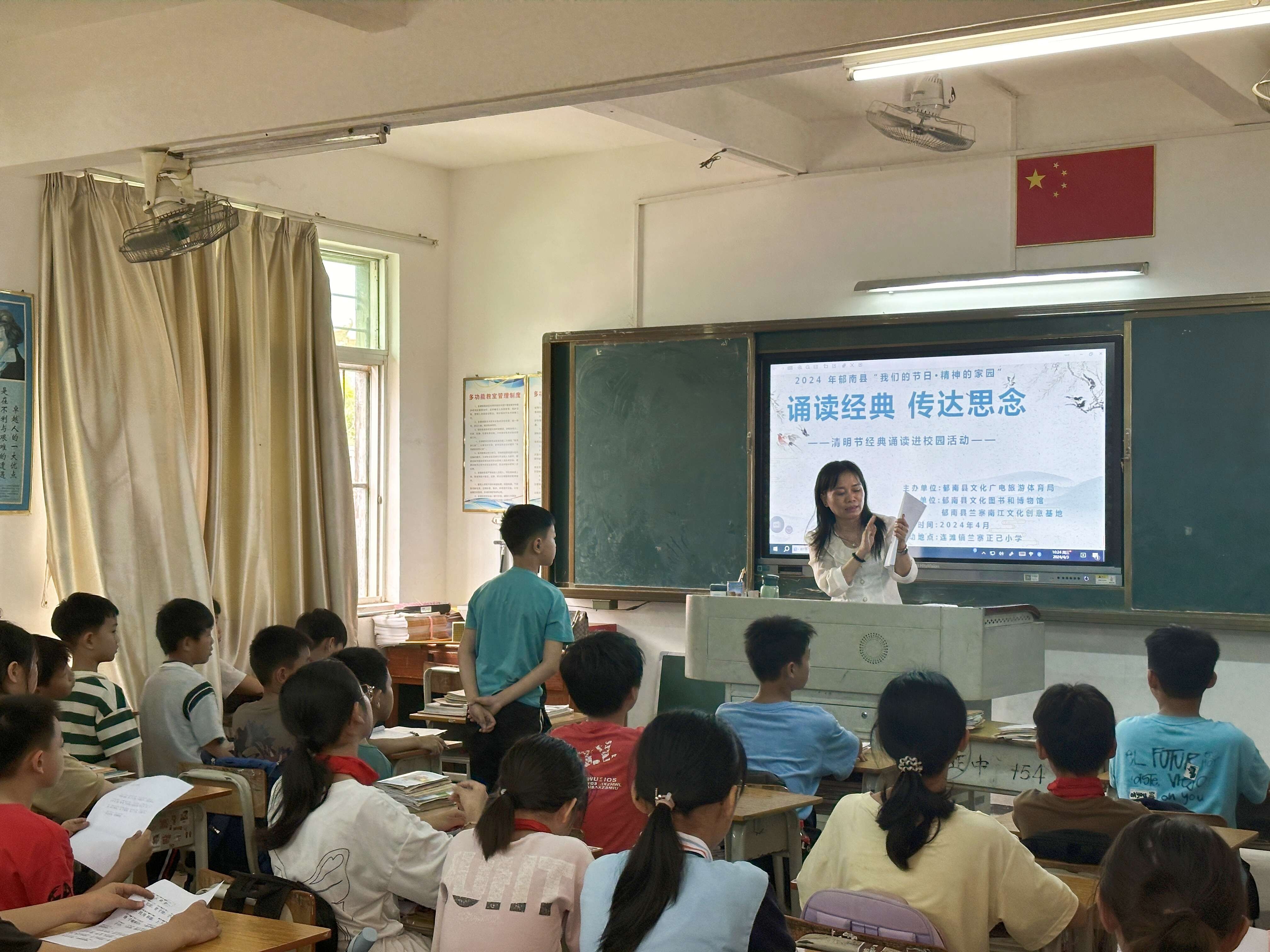 4月3日上午,由郁南縣文化廣電旅游體育局主辦,郁南縣文化圖書和博物館、郁南縣蘭寨南江文化創(chuàng)意基地承辦,在連灘鎮(zhèn)蘭寨正己小學(xué)開展了清明節(jié)經(jīng)典誦讀進校園活動,扎實推進經(jīng)典誦讀和中華優(yōu)秀傳統(tǒng)文化進校園,加強未成年人思想道德建設(shè)工作。