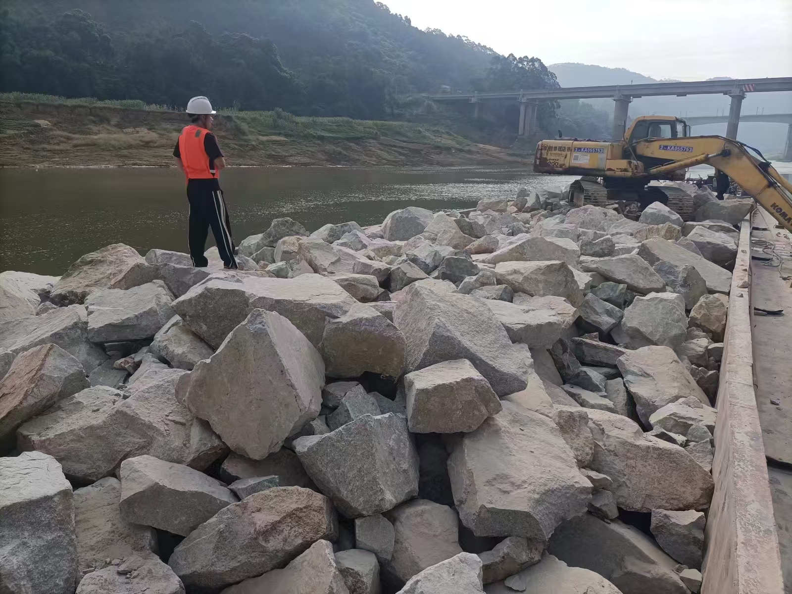 郁南縣2023年災后恢復建設項目開展水下拋石護腳作業(yè)