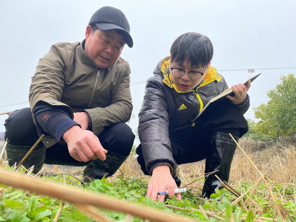 在湖南益陽(yáng)武圣宮鎮(zhèn)的千畝綠肥基地,農(nóng)技人員和種植大戶正在查看綠肥長(zhǎng)勢(shì)。宋梅攝