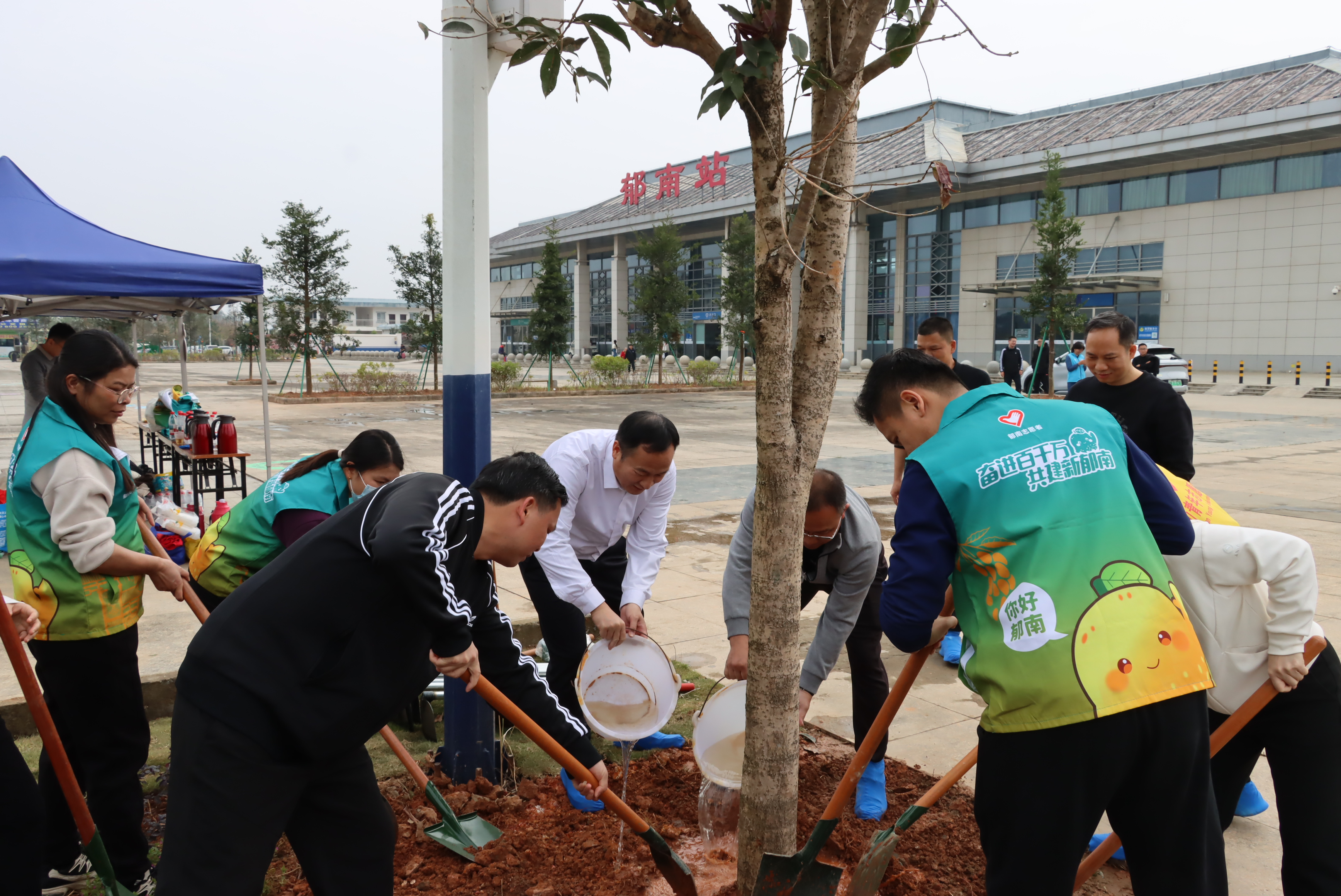 跨域協(xié)作聚合力,青年擔(dān)當(dāng)顯風(fēng)采。平臺(tái)鎮(zhèn)積極統(tǒng)籌各方資源、力量,搭建起跨區(qū)域合作的堅(jiān)實(shí)橋梁,在古勉村重點(diǎn)打造黨建引領(lǐng)鄉(xiāng)村綠化示范點(diǎn)——“云浮·中山青年綠美公園”,以青春之力為綠美廣東生態(tài)建設(shè)再添新綠。揭牌儀式當(dāng)天,來(lái)自兩地的領(lǐng)導(dǎo)干部與百名青年志愿者揮鍬培土,共同種下黃花風(fēng)鈴、沉香等苗木500株,其中,8公分以上喬木109株。苗木錯(cuò)落有致地扎根在南廣高鐵郁南站前廣場(chǎng),與高鐵站現(xiàn)代化的建筑群落相映成趣,勾勒出“站前有綠、林中有景”的立體生態(tài)畫(huà)卷。同時(shí),該鎮(zhèn)創(chuàng)建“支部帶團(tuán)建”機(jī)制,積極吸引返鄉(xiāng)大學(xué)生、青年企業(yè)家等群體參與規(guī)劃設(shè)計(jì)和后期管護(hù),充分發(fā)揮青春力量在生態(tài)建設(shè)中的生力軍作用?!霸聘 ぶ猩角嗄昃G美公園”作為中山、云浮對(duì)口幫扶協(xié)作的創(chuàng)新實(shí)踐,標(biāo)志著兩地協(xié)作共建生態(tài)項(xiàng)目邁入新階段。