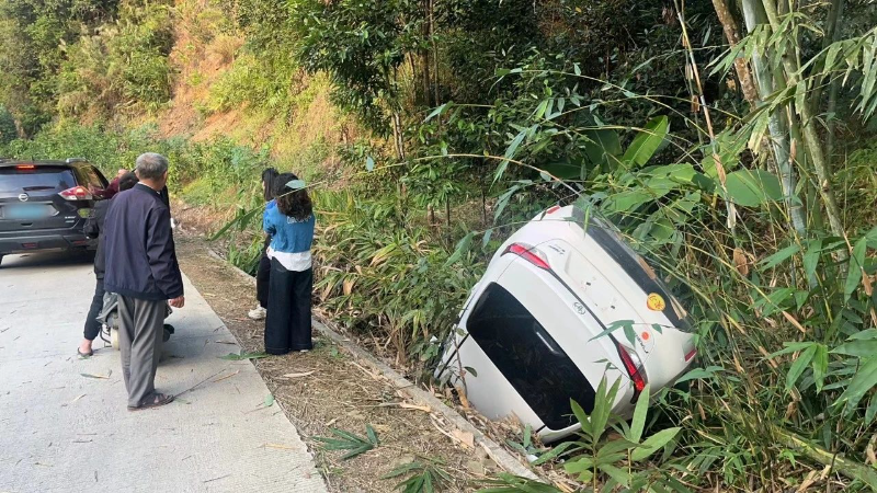 11月5日下午5時(shí)左右,通門鎮(zhèn)百賢村村民程金標(biāo)開車經(jīng)過S294線通門段勒竹坑口急轉(zhuǎn)彎處發(fā)現(xiàn)前方有竹子傾倒在路邊導(dǎo)致交通阻塞,不遠(yuǎn)處一輛貼著“實(shí)習(xí)”字樣的白色小轎車側(cè)翻在公路邊的溝渠。車輛呈傾斜狀態(tài),車門變形受損嚴(yán)重,一名女駕駛員被困在駕駛位無法動(dòng)彈,車輛隨時(shí)有自燃的風(fēng)險(xiǎn)。