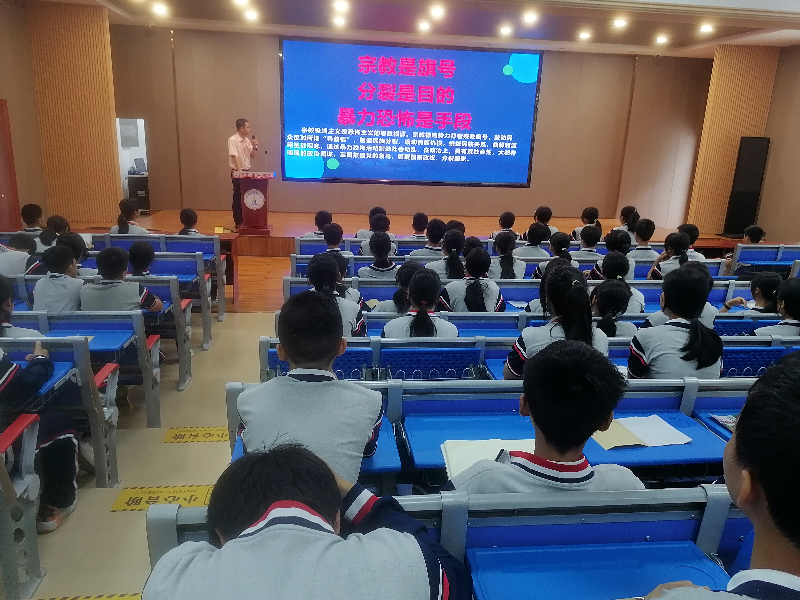 為進一步提高師生樹立正確的國家觀、民族觀、宗教觀,積極營造校園反宗教極端思想宣傳教育氛圍,4月23日下午,縣委統(tǒng)戰(zhàn)部、縣民族宗教事務局聯(lián)合縣實驗中學開展反宗教極端思想進校園活動。
