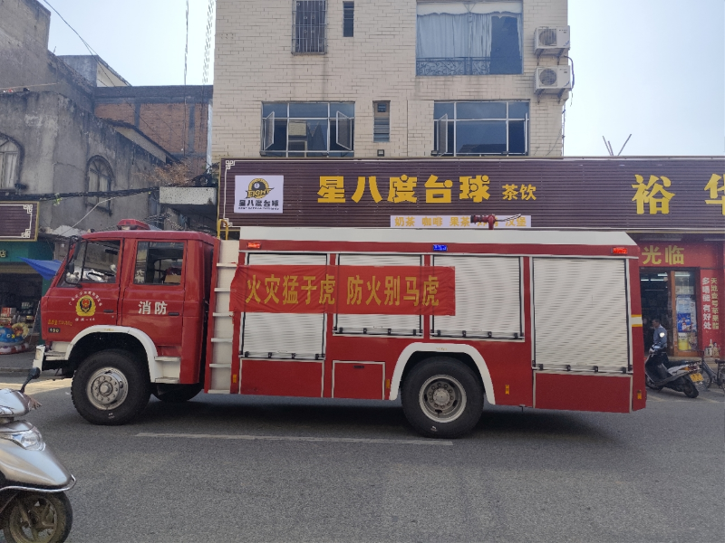 活動以消防車“走街串巷”形式廣泛進行消防宣傳開始,鮮紅醒目的消防宣傳標語懸掛在消防車身,播放消防宣傳音頻,深入繁華街道、巷頭巷尾等場所進行巡游宣傳,提醒群眾關注消防,將平安送進千家萬戶。